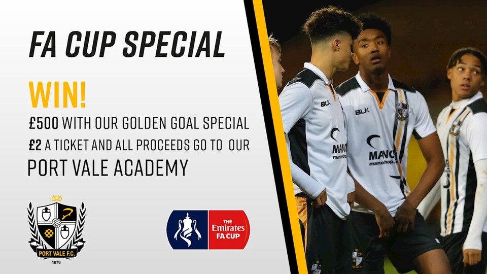Don't forget every time you buy your ticket for £2, ALL proceeds go towards your Port Vale Academy to help them out.