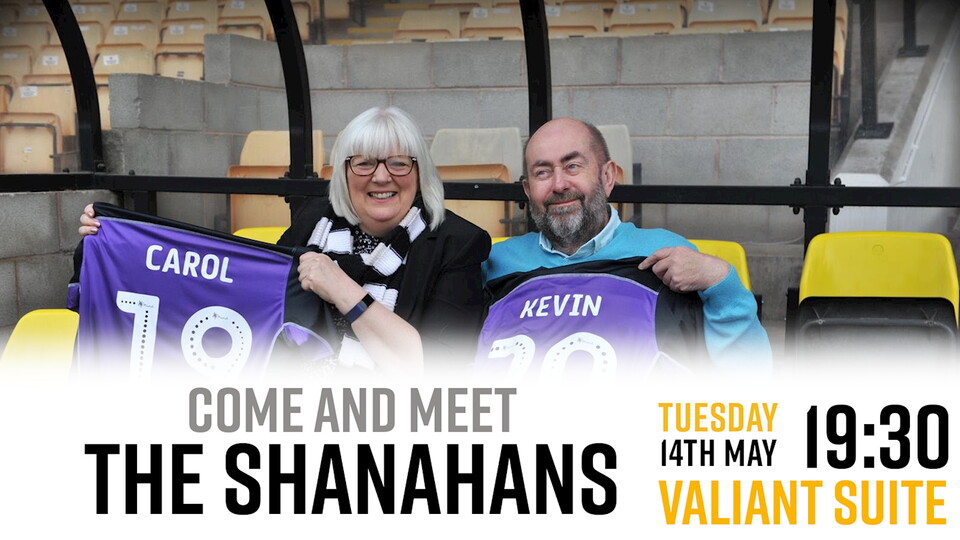 The evening with the Shanahans will be hosted in the Valiants Suite on Tuesday 14th May. Doors open at 19:00 and the evening will kick off at 19:30.