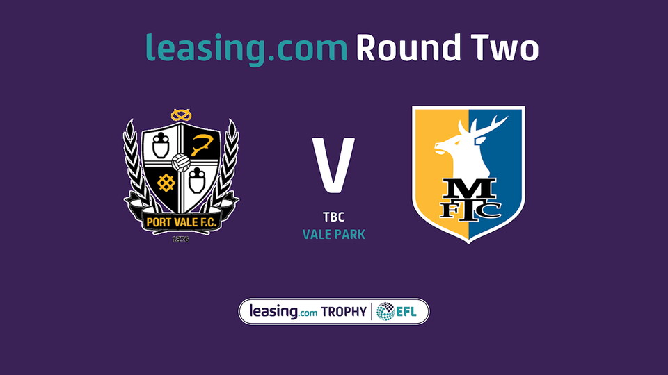 John Askey's side will welcome Mansfield Town to Vale Park for Round Two of the Leasing.Com Trophy.