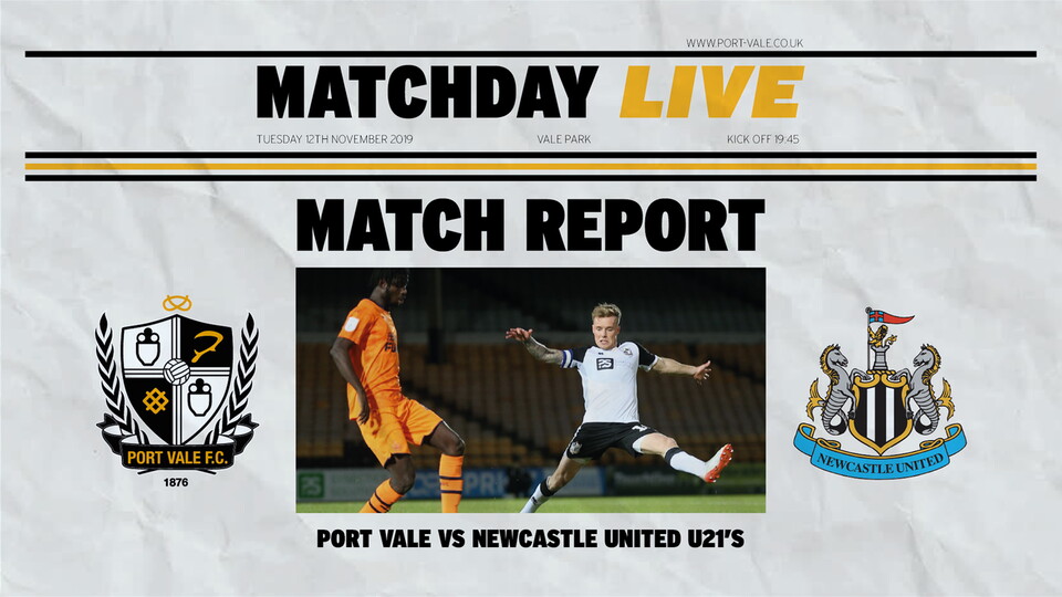 Five minutes before half-time the Vale pressure eventually paid off as they took a well-deserved lead through the lively Cullen. Archer was quickest to react to a defensive error as he picked the ball up on the edge of the Newcastle area, the Vale forward took an early shot which was well saved by Jake Turner, yet Cullen was alert to slide home the rebound.
