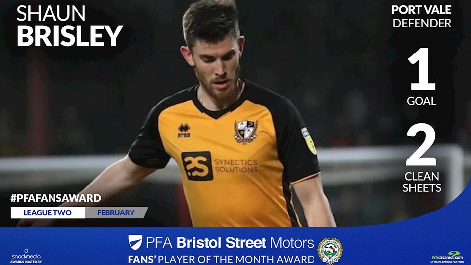 Shaun Brisley has been nominated for the PFA Bristol Street Motors Player of the Month prize for February - with voting open now.