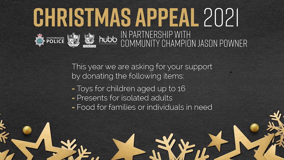 Port Vale FC, sister company Synectics Solutions, Staffordshire Police, the Port Vale Foundation Trust and children’s charity the Hubb Foundation are again joining forces with community champion Jason Powner to bring much-needed festive cheer to needy and vulnerable local people.