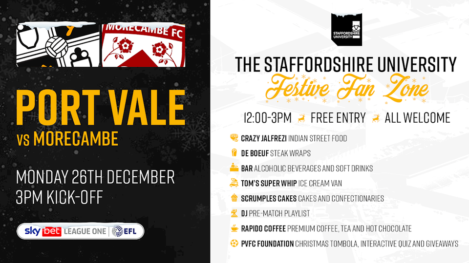 Coming along to the Staffordshire University Festive Fan Zone this Boxing Day? Here is everything that you need to know ahead of our Sky Bet League One clash against Morecambe!