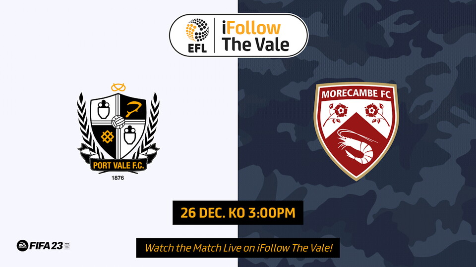 - The Vale welcome Morecambe to Burslem as Sky Bet League One football returns to Vale Park this Boxing Day (kick-off 3pm)