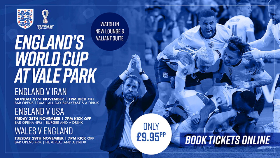 Be a part of England's FIFA World Cup Journey and watch every game LIVE from Vale Park!