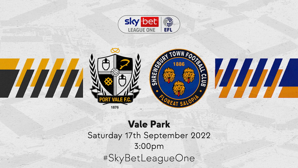 The Valiants return to Vale Park this weekend as we welcome Shrewsbury Town to Burslem. Buy tickets online and join us for our final home fixture of September…