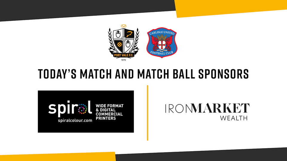 Port Vale FC would like to extend a warm welcome to Spiral Colour and NET-WORTH NTWRK - Match and Match Ball sponsors, respectively, for today's Sky Bet League One fixture against Carlisle United!