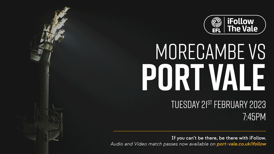 Back the Valiants from wherever you are on iFollow the Vale tonight when they make the trip to Morecambe in Sky Bet League One action!