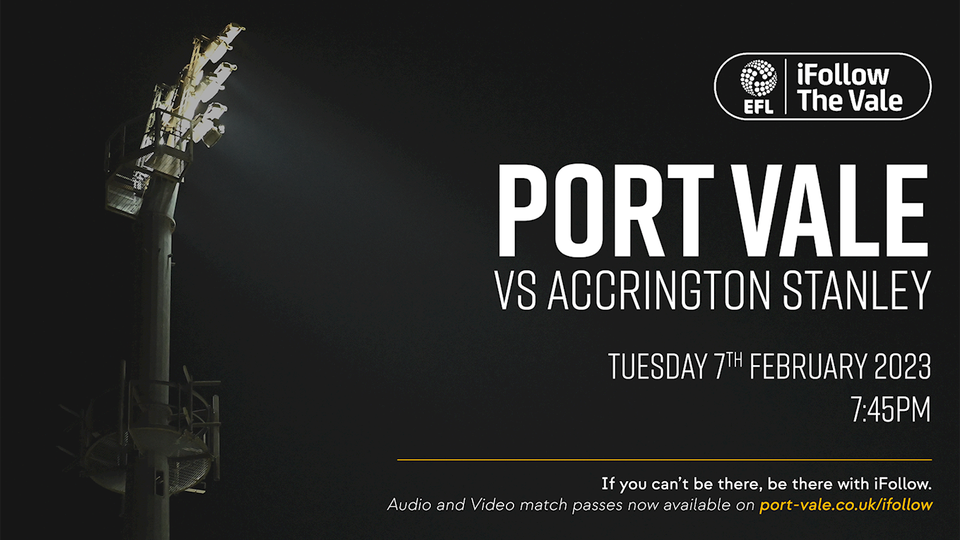 If you can't make it to Vale Park for tonight's League One clash against Accrington Stanley, iFollow the Vale has you covered!