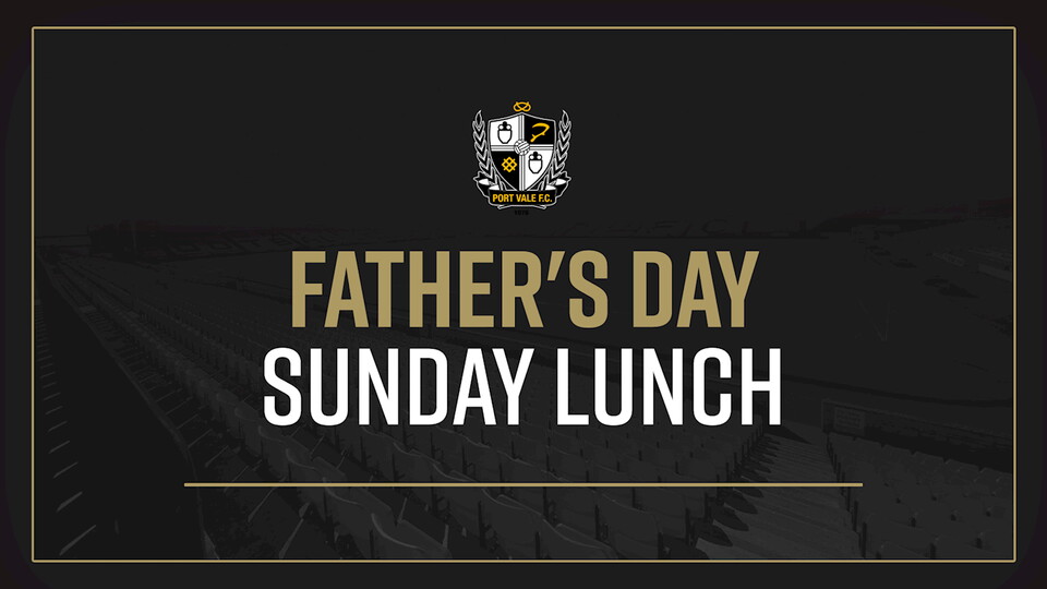 On Sunday 18th of June, Vale Park plays host to a special Father's Day Sunday Lunch with a full three-course offering available for £22.95 per adult and £10.95 per child (under 16) and two-course meals also available for just £19.95 per adult and £8.95 per child.
