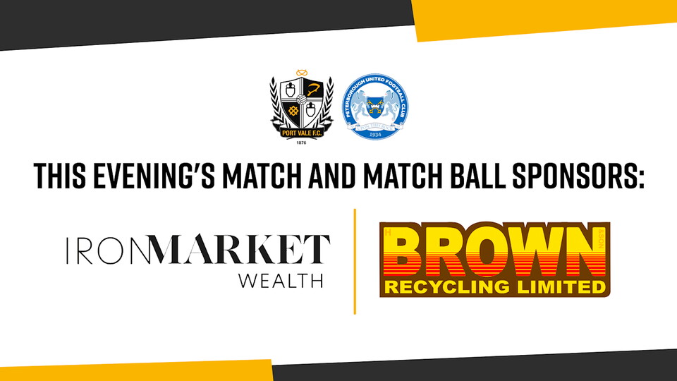 Port Vale FC would like to extend a warm welcome to IronMarket and Brown Recycling - Match and Match Ball sponsors, respectively, for this evening's Sky Bet League One fixture against Peterborough United!