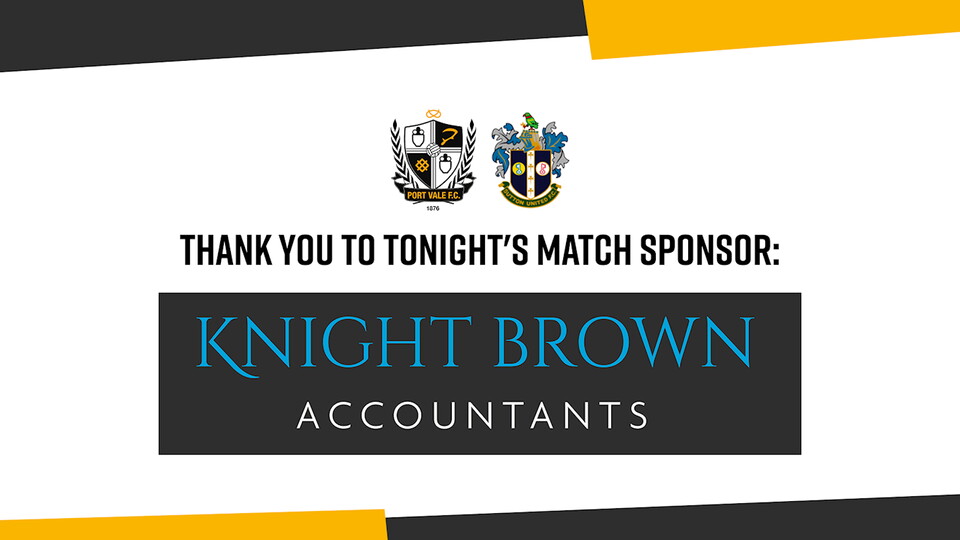 Port Vale FC would like to extend a warm welcome to Knight Brown Accountants - Match Sponsor of this evening's Carabao Cup Third Round fixture against Sutton United.