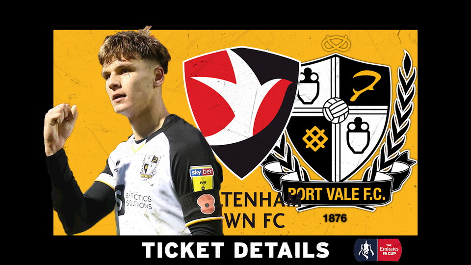 Port Vale travel to The Jonny-Rocks Stadium on Saturday for our second round tie in the Emirates FA Cup against Cheltenham Town. Tickets are ON SALE from 2pm today and prices can be found below: