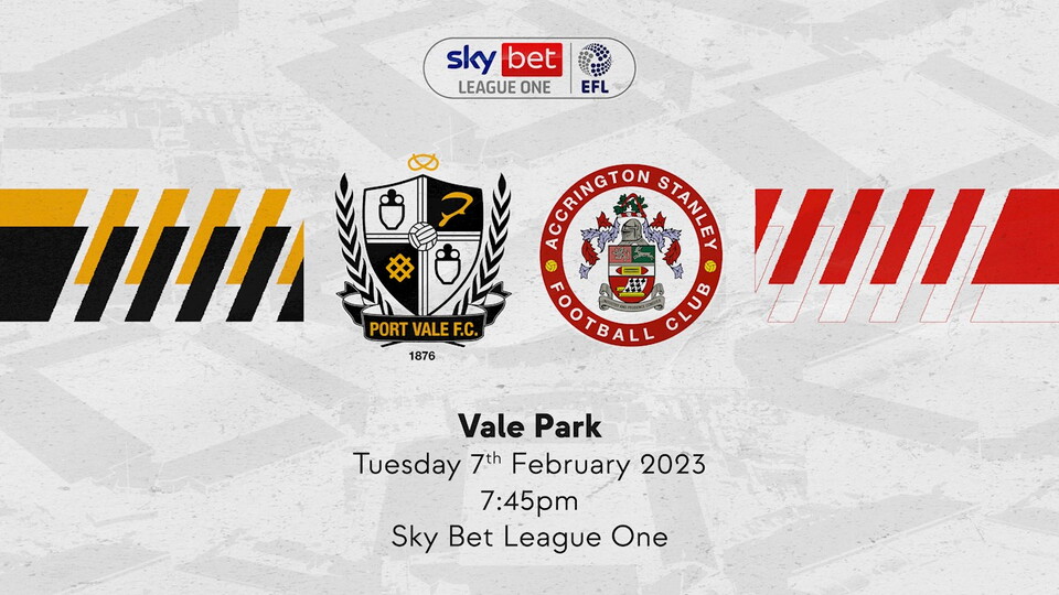 - Port Vale vs Accrington Stanley will now take place on Tuesday 7 February 2023 (kick-off 7.45pm)