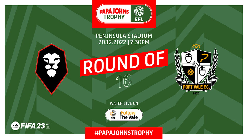 - The Vale travel to Salford City on Tuesday 20/12 in Papa Johns Trophy action (kick-off 7:30pm)