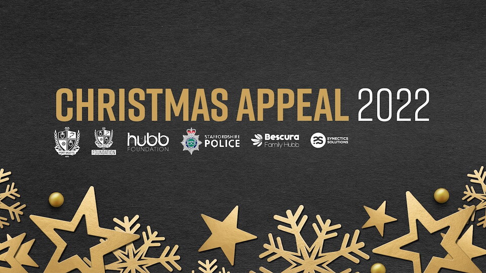 - Port Vale FC launches its 2022 Christmas Appeal, in partnership with Synectics Solutions, the Hubb Foundation, Bescura Family Hubb and Staffordshire Police