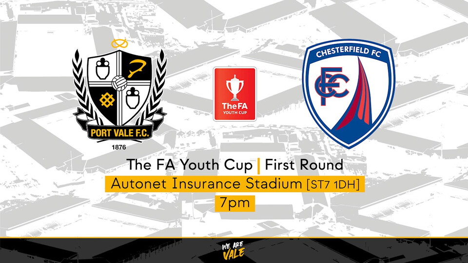 The Vale’s Under 18s will kick off their FA Youth Cup campaign on Wednesday evening when they host Chesterfield at Kidsgrove Athletic’s Autonet Insurance Stadium (kick-off 7pm).