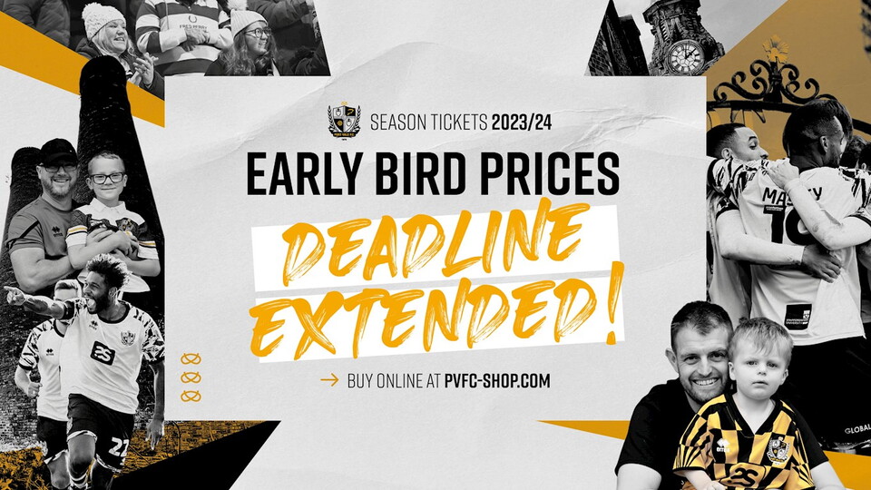 Supporters yet to purchase their 2023/24 Season Ticket now have until the final day of the 2022/23 League One campaign to take advantage of the early bird pricing window, with the deadline extended until midnight on Sunday 7th May for online purchases!