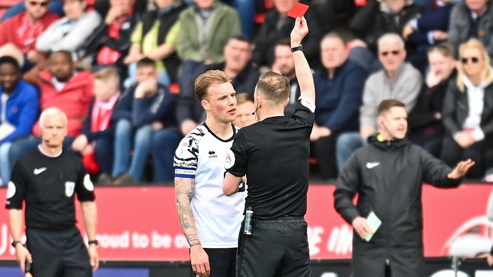 The midfielder was sent off for violent conduct during their EFL League One game against Lincoln City on Saturday 15 April.
