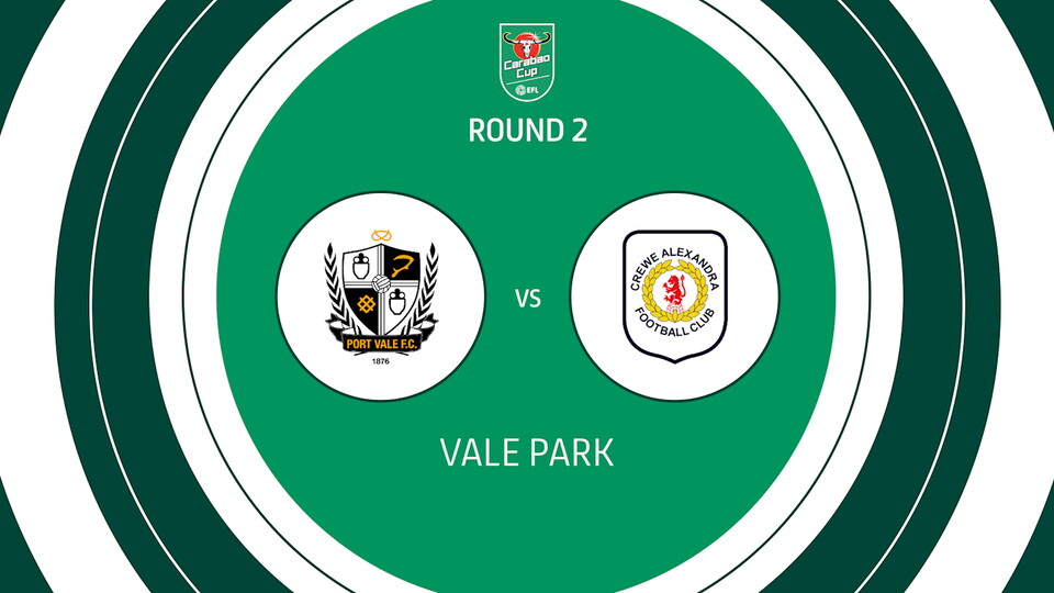 We will welcome our Cheshire-based neighbours to Vale Park on Tuesday 29th August 2023 with kick off time scheduled for 7:45pm.