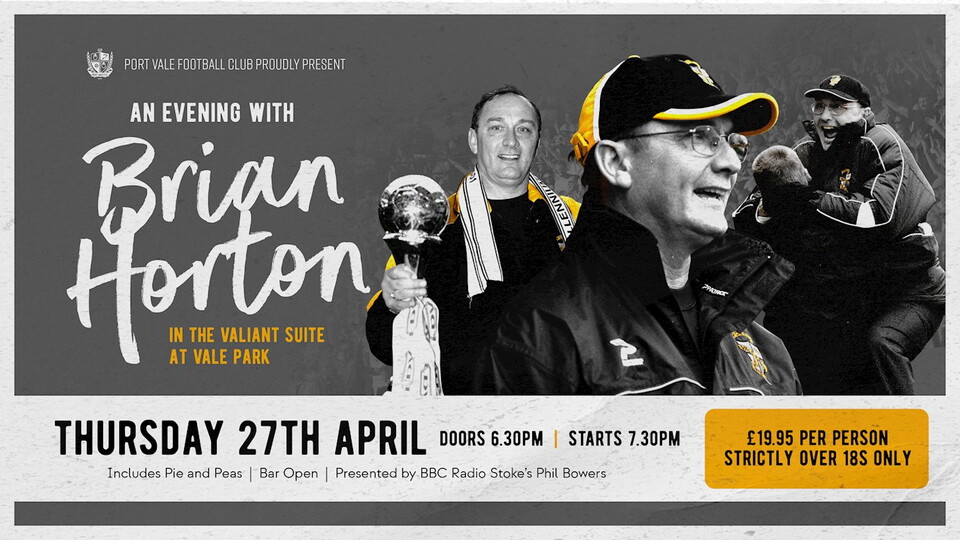 Port Vale Football Club proudly present An Evening with Brian Horton, hosted by BBC Radio Stoke’s Phil Bowers on Thursday, 27th April!