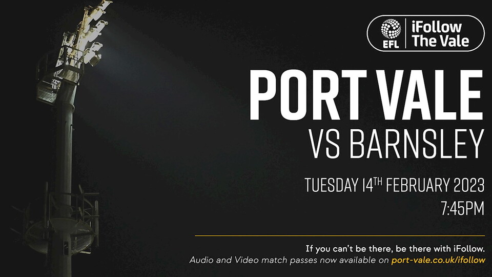 Back the Valiants from wherever you are on iFollow the Vale on Tuesday night as Barnsley are the visitors to Vale Park.