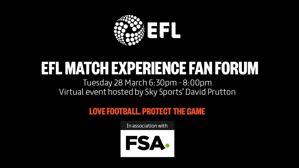 The EFL is holding a Match Experience Fan Forum, taking place on Tuesday 28 March (6.30pm-8pm), and supporters are welcome to attend virtually via a pre-event sign up process.