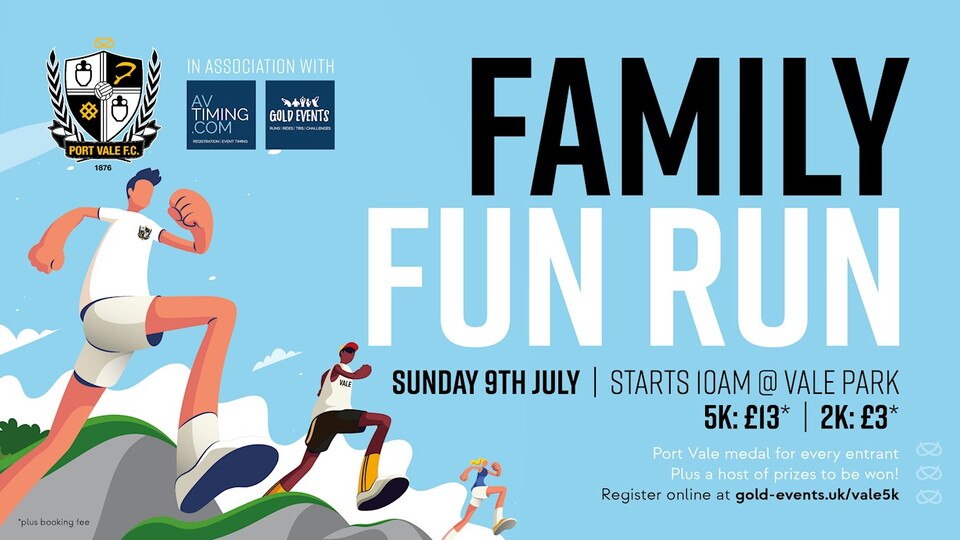 - Family Fun Run and Bike Ride to take place on Sunday 9th July at Vale Park