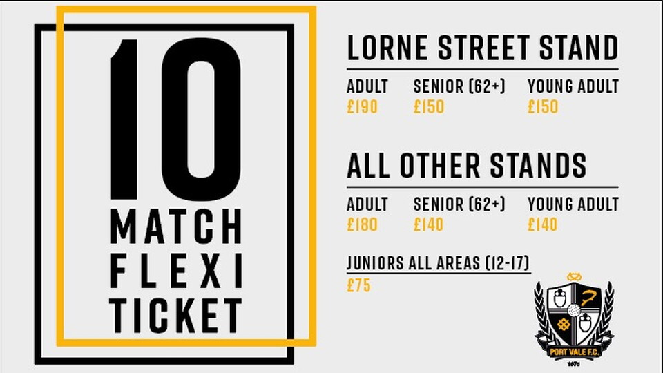 Don't forget that our 10-Match Flexi Package has returned and ON SALE NOW, so you can purchase yours tomorrow here at Vale Park!
