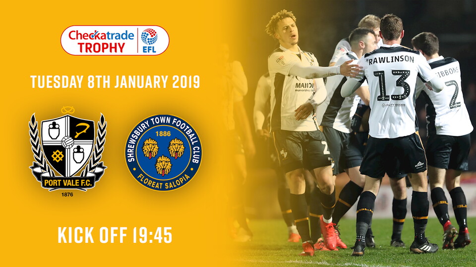 Vale will face The Shrews on Tuesday 8th January 2019, with a kick-off time of 7:45pm.