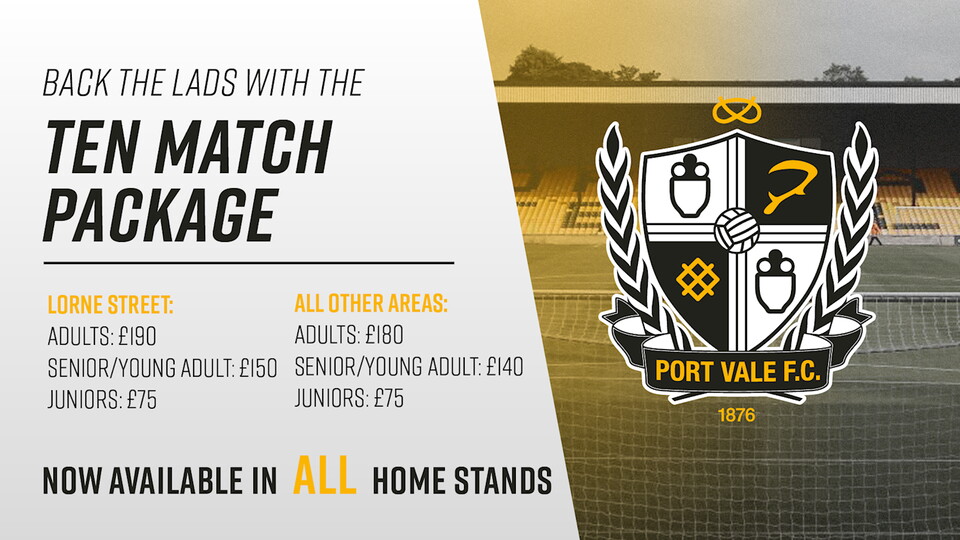 With our fantastic Ten Match Package deal you can pick and choose whatever ten games you would like to attend, so you know you are guranteed to watch the mighty Vale play when it suits you best.